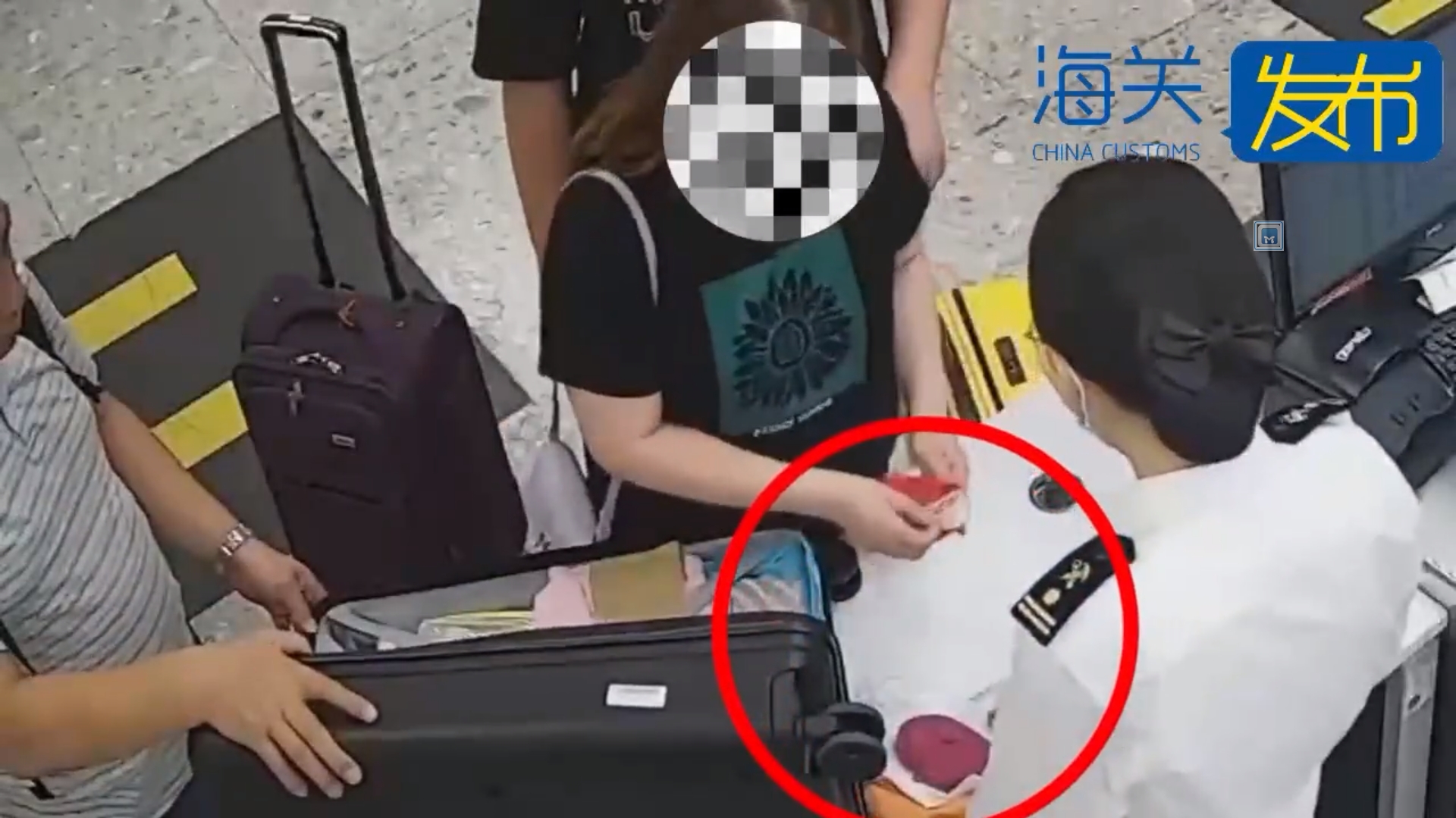 西九龍站海關關員對出境旅客及其行李物品進行監管時,發現一名選擇「無申報通道」出境的旅客行李箱機檢圖像異常,圖像顯示行李箱內有大量金屬製品。經進一步查驗,海關關員在其行李箱內查獲一個紅色飾品袋,內有超量攜帶的疑似黃金製品22件,共計405.7克,總價約23萬元。經專業機構鑑定,上述物品均為含量超99.9%足金製品。