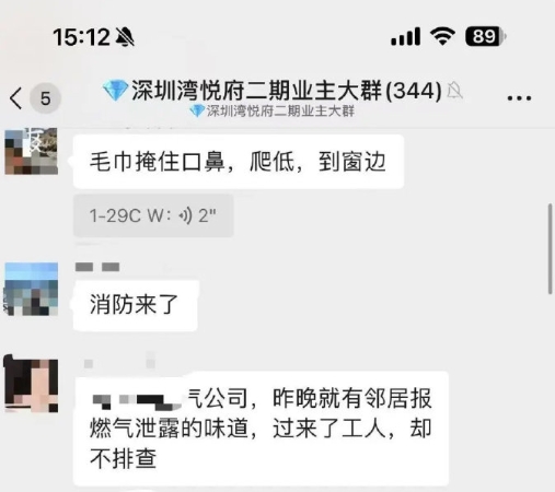 據悉,起火住宅的物業公司為深圳華潤物業管理有限公司。在現場處置的物業工作人員透露,昨日12時左右,燃氣公司曾到該棟住宅的住戶家中上門檢查,疑似有住戶曾向燃氣公司反映出現燃氣洩漏。