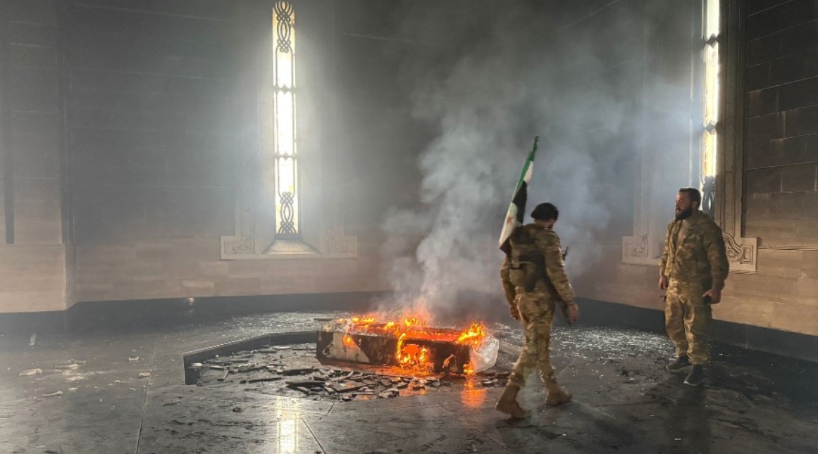 【橙訊】敘利亞反對派當地時間周日(8日)控制了首都大馬士革,阿薩德政權至此倒台。據法新社當地時間周三(11日)拍攝的片段顯示,巴沙爾父親哈菲茲·阿薩德(Hafez al-Assad)的墳墓在其家鄉卡爾達哈(Qardaha)被叛軍焚毀,身着迷彩服的反對派戰士和年輕人圍觀焚燒。