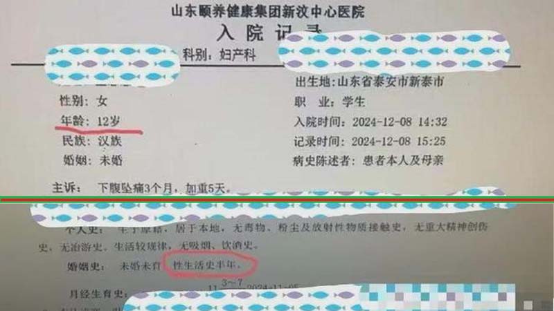【橙訊】山東泰安近日網傳一名12歲女孩因盆腔炎住院治療,且感染HPV,有半年性生活史。網傳圖片顯示,病人半年前曾因陰道炎就過醫。聯合調查組今日(16日)發布通報稱,該女孩曾與17歲男友發生性關係。