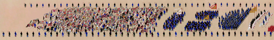 另一大難點在於精確的尺寸:繪製的內容要根據當時的尺寸進行等比例縮小,精細到皇帝坐的轎子有多高、有多長、幾個人抬、都要按照公式換算。本身對數字並不敏感的藝術家,努力作畫之前,還需要算好比例大小,棘手度可見一斑。