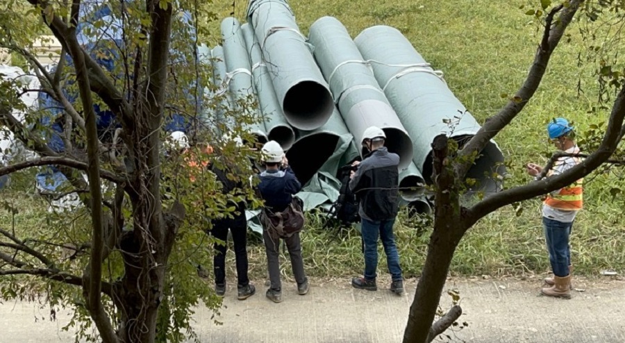 現場張貼告示,指有關工地於2024年10月至2024年12月,進行為期2個月的地下雨水渠修復工程。所見工地範圍的草坪上,擺放了一批大水管。
