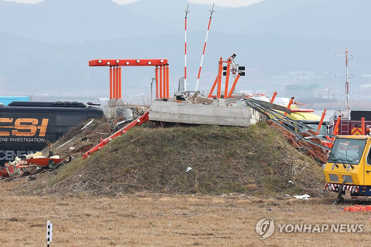 南韓務安國際機場和國土交通部當地時間周一(30日)表示,航向台和混凝土構造物設置在距離跑道末端約250米外的非跑道地段。構造物高2米,被土堆覆蓋。加上航向台,設施總高度約達4米。