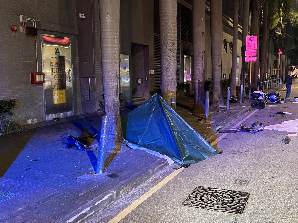 有附近大廈的管理員表示,事發時聽到「嘭」一聲的巨響,之後出外查看,見到有電單車撞向路邊防撞柱,大量碎片四散,「初時以為係私家車撞,出到嚟見到鐵騎士瞓地,隻手仲有郁下,之後就唔郁,咁啱警察巡經見到」。