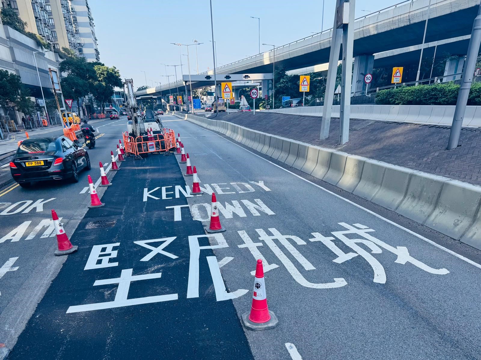 干諾道西的「坚泥地城」路面標示已被修正。