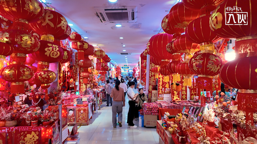 拍攝時剛過聖誕節,來到商城門面,已經感覺到濃濃新年氣氛,因為不少店舖已掛上大量燈籠,甚至遮蓋了整個舖面,所以看到心儀裝飾後,不要天真地記下店名,回頭再看,因為很可能連店名也找不到。商城內不難聽到廣東話,相信已有港人提早來辦年貨,當然內地人佔比較多。有店主說,年年生意都好,下星期會更旺丁。