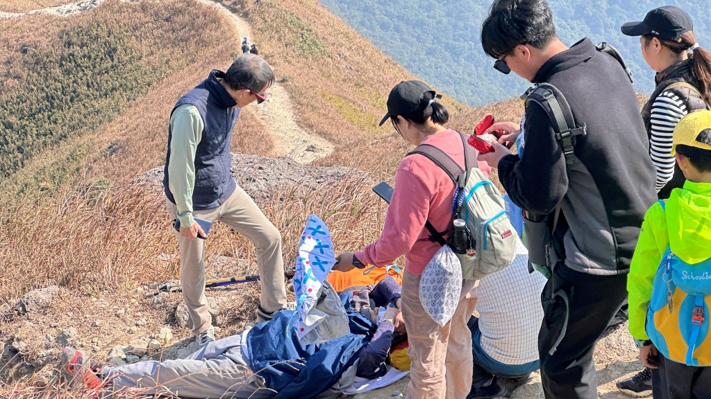 【橙訊】一名年約70歲男子今早偕兩名男友人,一行三人,由石壁水塘上山,行至昂坪鳳凰山頂,至中午近1時,由鳳頂再落伯公坳,大概行了約200米,事主失平衡跣腳,跌落2米下斜坡,後腦着地淌血,仍然清醒。