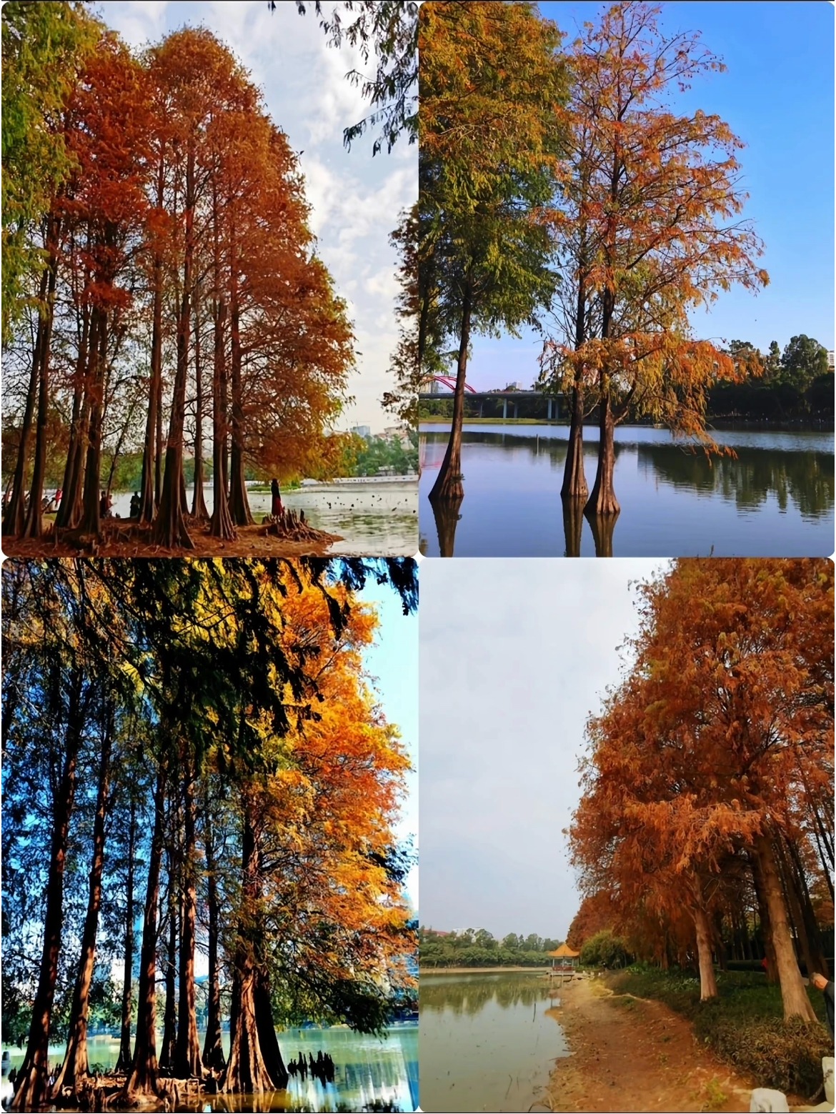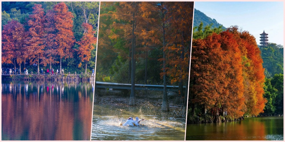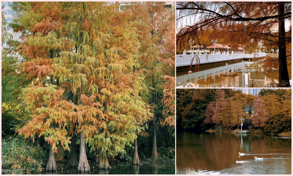 深圳洪湖公園落羽杉色彩多樣。(圖片來源:熙榕旅遊筆記@小紅書)