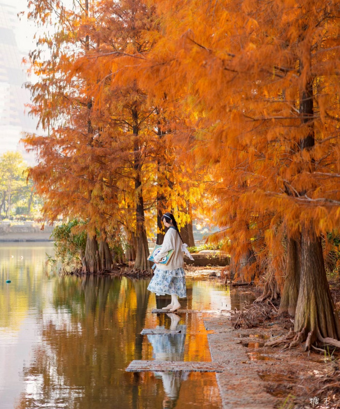 要打卡效果更好的話,可以穿白色或淺色的衣服,與金燦燦的落羽杉達成完美配搭。