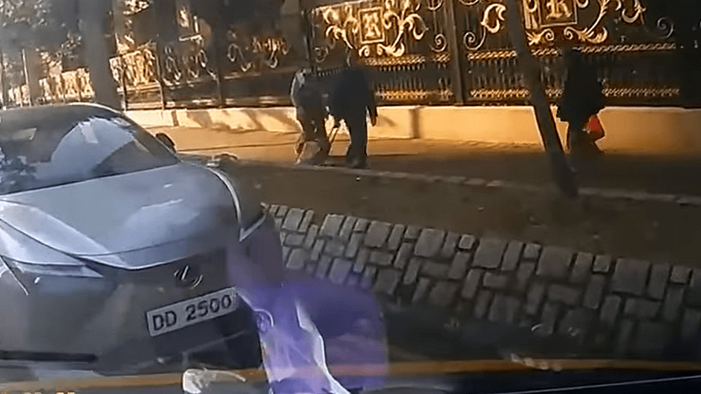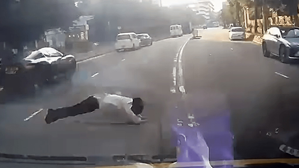 男子插水式仆落地上,司機緊急扭軚閃避。片段截圖