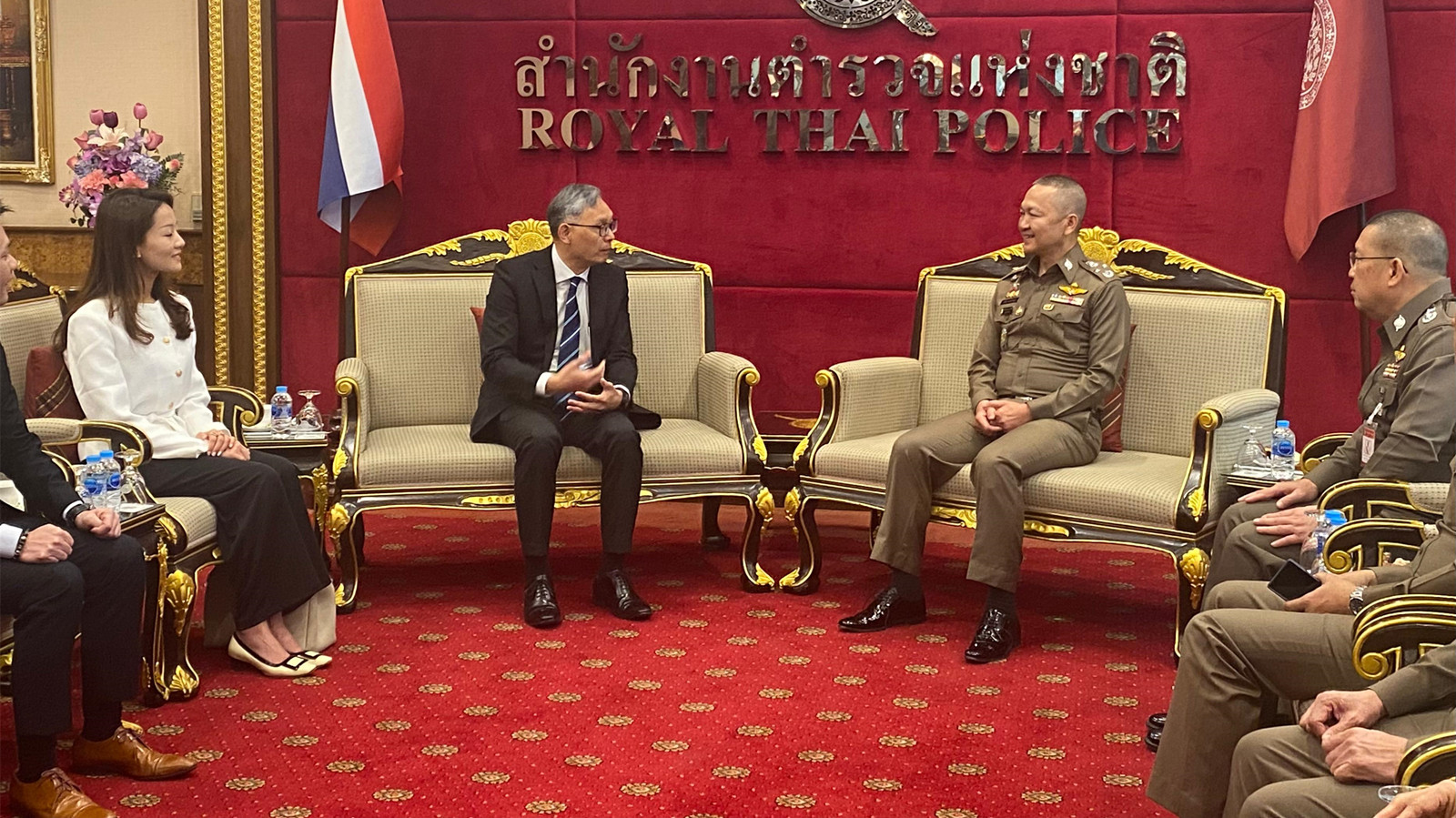 專責小組一行人隨後與泰國國家警察副總長(防止及打擊罪案)Prachuab Wongsuk會晤,反映有關求助個案情況,雙方就進一步加強合作,共同打擊電信網絡詐騙、人口販運等跨境犯罪問題深入分享經驗和交換意見。