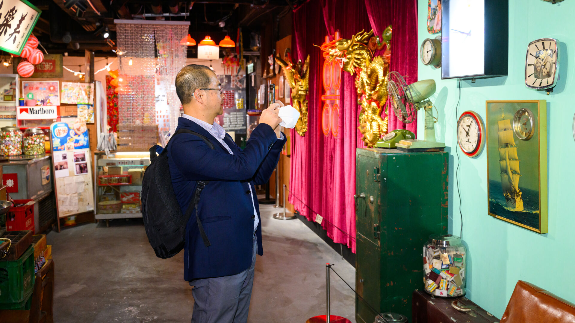 一眾嘉賓亦到訪以舊香港為主題的體驗館,他們被館內的港式士多、懷舊零食和玩意等吸引,紛紛打卡留念。