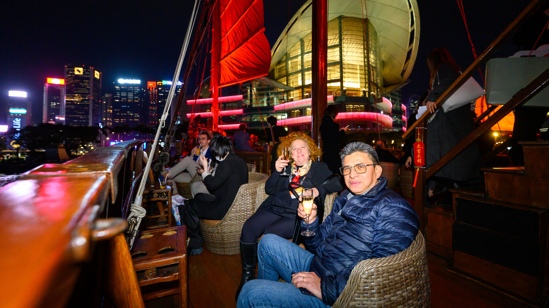 旅發局在本周一、二(13、14 日)論壇日間議程完結後,安排與會嘉賓海陸夜遊香港,感受稱譽全球的經典夜間魅力。其中,林毅夫教授、黃蓓以及 Marc Baghadjian在周二晚上跟約50名嘉賓乘坐傳統中式帆船張保仔號,一邊泛舟維港,一邊碰杯暢飲。