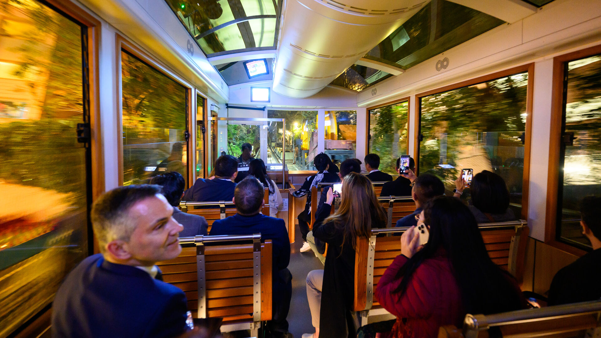 另一批約40名嘉賓則以不同角度暢玩夜香港。他們在周一晚上乘坐第六代山頂纜車登上太平山頂,沿途透過全景玻璃窗感受被自然環抱以及欣賞天際線,之後前往凌霄閣觀景台飽覽香港繁華都市夜景。