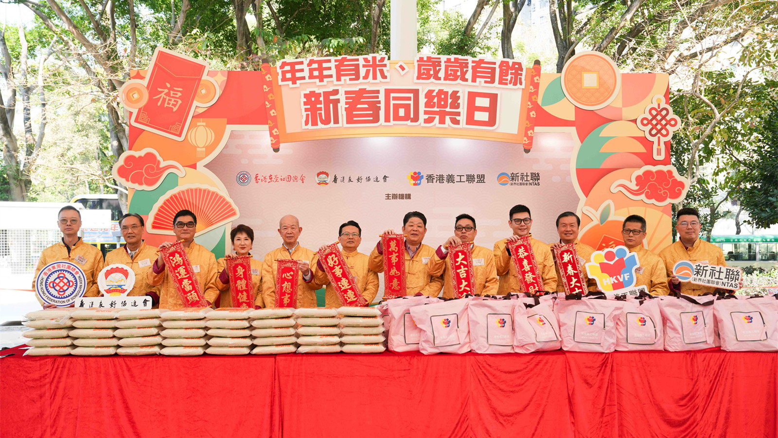 1月19日,香港義工聯盟、香港友好協進會、新界社團聯會聯同香港東莞社團總會以上水為第一站,合辦「年年有米、歲歲有餘」新春同樂日,為新界北區市民派贈新春福袋和米,現場還設有寫揮春攤位和過年飾物製作工作坊,吸引逾千人出席,率先開啟迎新春的熱鬧氣氛。