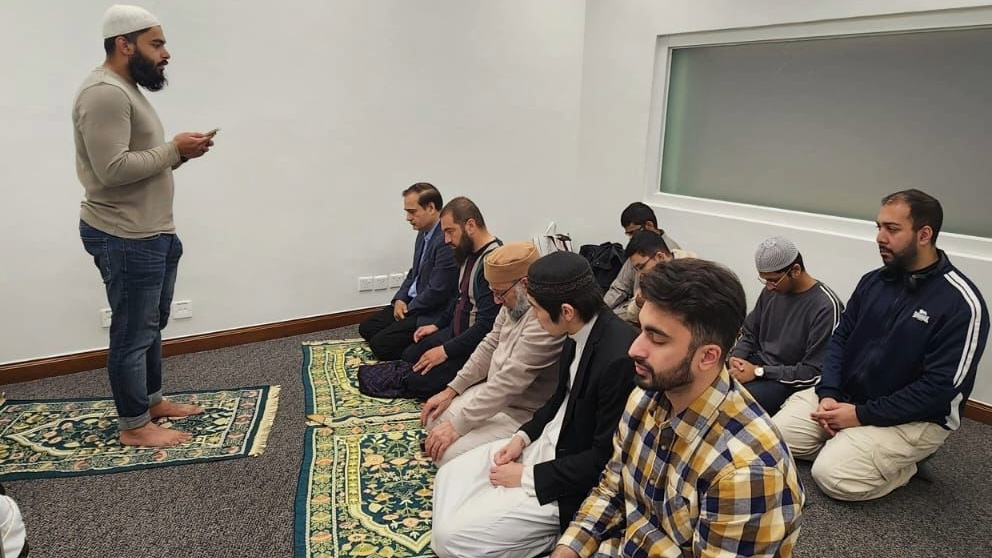男女分隔的祈禱室,有標示朝拜方向,並提供禮拜禮拜氈作祈禱用途。