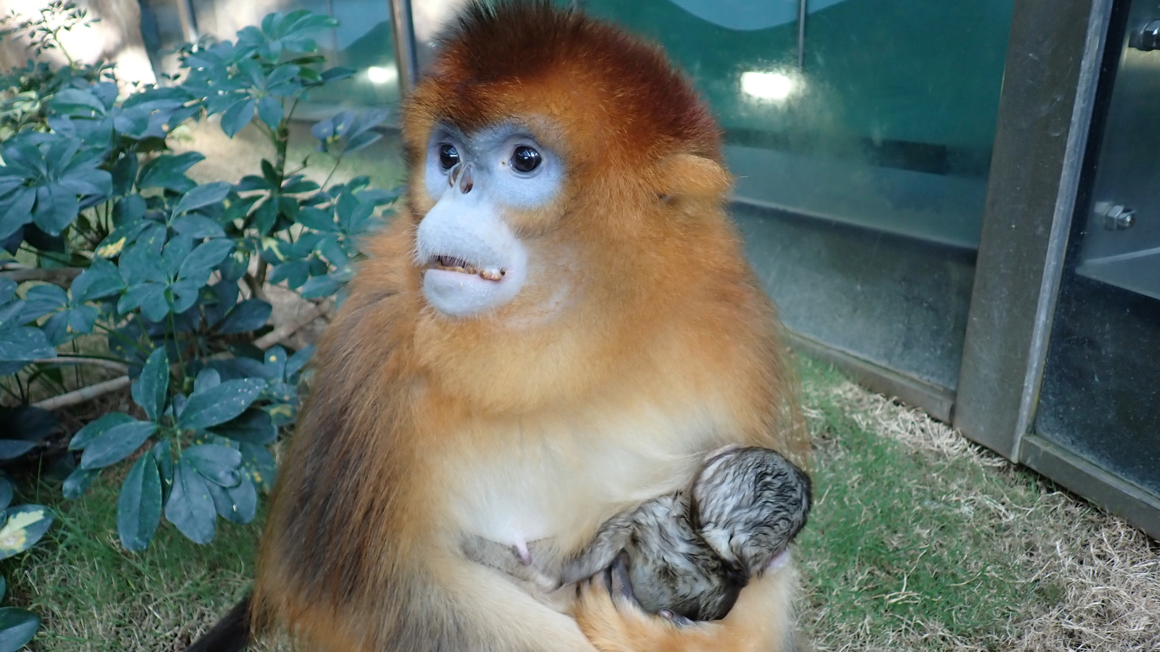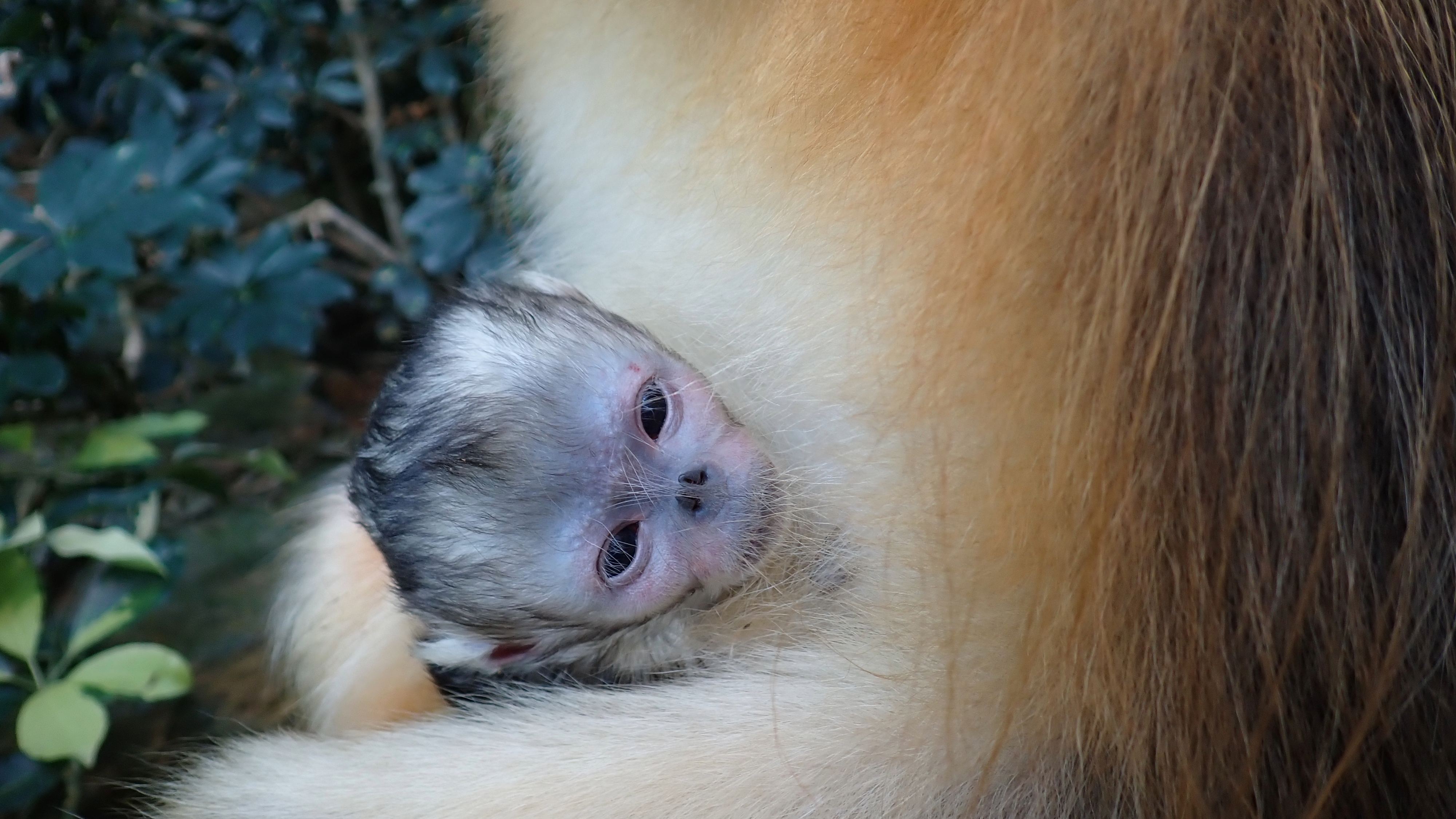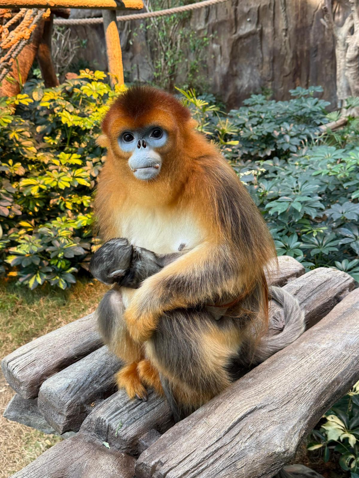川金絲猴「樂樂」在海洋公園誕下牠在港的第四個寶寶。