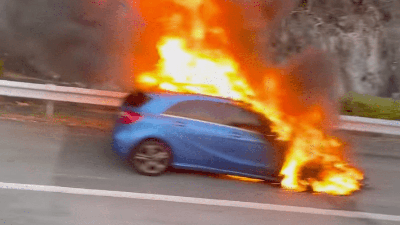 車輛行駛途中突然起火自焚。網上片段截圖