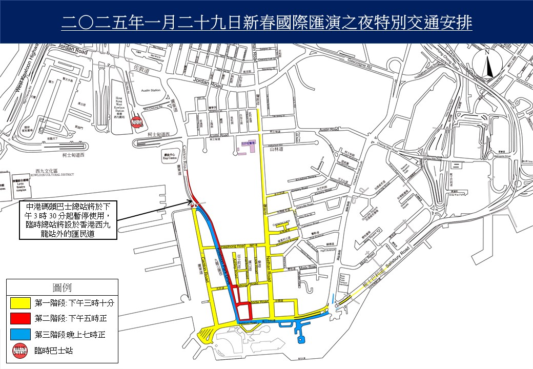 至於煙花匯演初二晚8時在維港兩岸上演,尖沙咀市中心、尖東和西九文化區,當日下午5時開始分四階段封路,警方會因應現場交通和人流,不時作風險評估,有需要會封閉更多路段。以往有市民到紅磡海濱觀賞,但由於仍有工程,今次未能作為觀賞區。