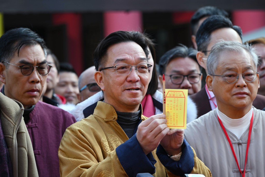 【橙訊】大年初二是車公誕。新界鄉議局主席劉業強今早按照習俗,到沙田車公廟為香港祈福,經過三叩首、上香參拜等儀式後,隨即為香港求得第24號中籤。