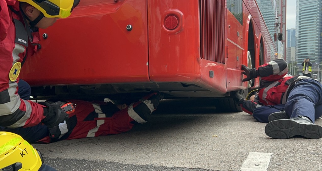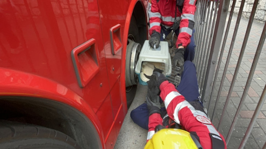 消防員接報趕到拯救,愛護動物協會亦接獲通知派員到場,協助播放貓咪的叫聲錄音,最後人員鎖定小貓的位置,發現牠身處巴士底近車尾,消防員「瞓身」爬入巴士車底,成功將小貓救出。