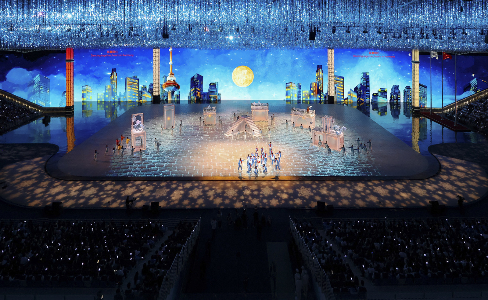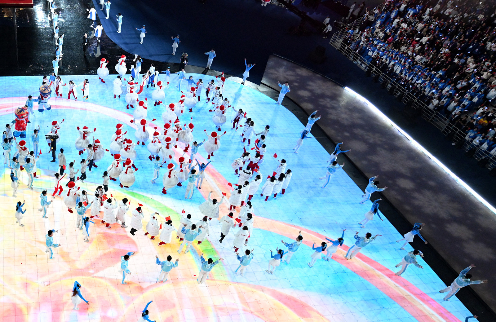 在升國旗、奏唱國歌後,現場播放短片《冬日奏鳴曲》,一輪歌舞表演後,各參賽代表團旗幟及運動員入場。國家體育代表團由收穫兩金一銀的自由式滑雪運動員徐夢桃擔任持旗手,中國香港代表團由男子冰壺運動員甄浩天擔任持旗手。
