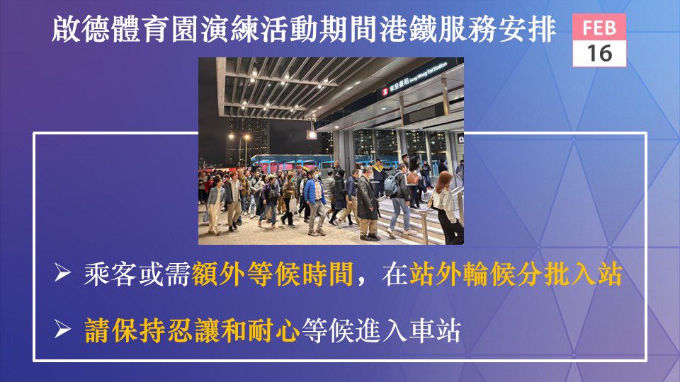 港鐵呼籲乘客為行程預留充裕的交通時間,等候入站時保持忍讓和耐心,並遵從警方及車站人員指示。