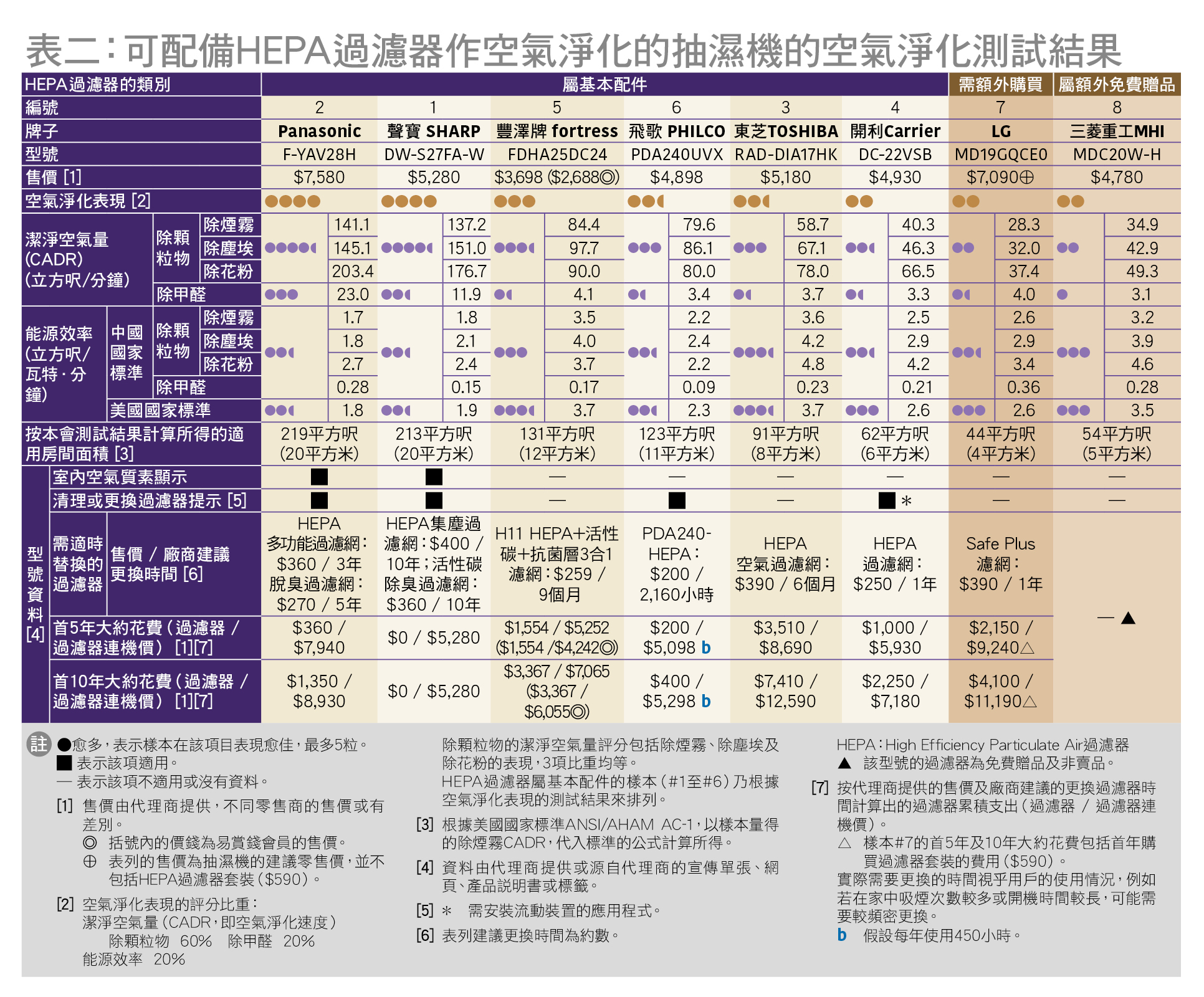 至於在8款可以配備HEPA過濾器的樣本方面,消委會發現在去除顆粒物及甲醛上的速度差距非常懸殊,其中淨化速度的最快樣本在去除甲醛能力上,比最慢的快6.4倍。而2款需要額外選購或為免費贈送過濾器的樣本的整體表現較遜色。