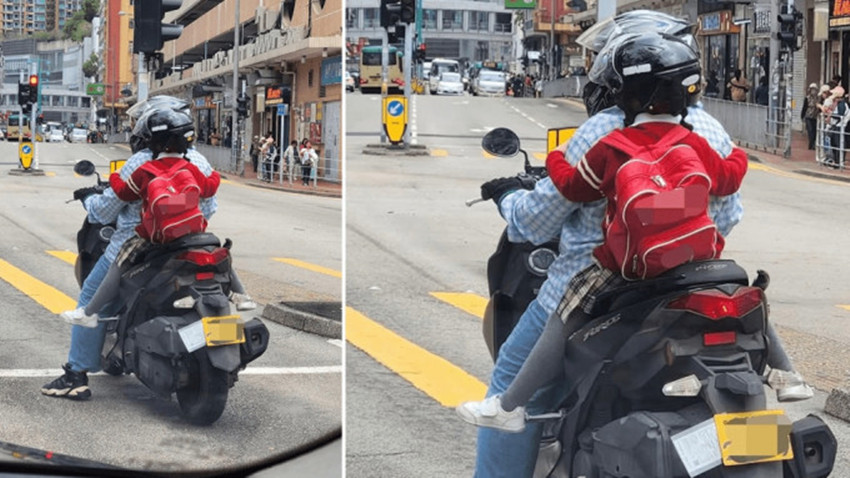 【橙訊】今日網上瘋傳一張相片,可見一名男子駕駛著電單車,載着一名年幼女童,在馬路上行駛。電單車當時停在屯門雅都花園附近一個燈位前,女童雖然有戴頭盔,但她伏在鐵騎士的背部、手抱男子雙臂,未見有其他安全措施,情況驚險。