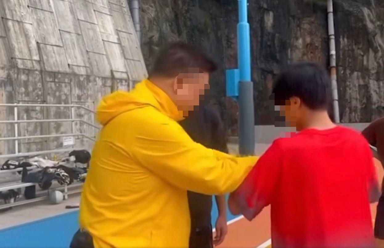在片段中,該名身穿黃色外套的男子當時正與數名青少年爭執,懷疑是與場地的使用權有關。片段中看到一名身穿紅衣的青少年正在向男子展示手機的資訊,但男子卻想將青少年的手機拿走,被其他青少年要求他不要這樣做。