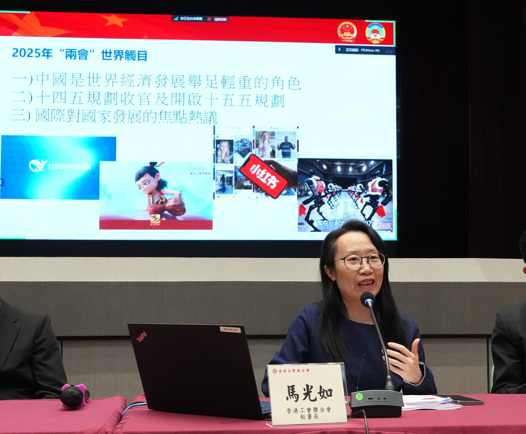 黃國分享了中央政府工作報告內容及全國政協的職責和過去一年工作。他指出,2024年經濟社會發展主要目標任務圓滿完成,成績來之不易,「穩」的態勢鞏固持續,「進」的步伐堅實有力,同時也看到面臨的挑戰和有利條件。在改革開放深化進程中,發展成果更公平惠及全體人民,民生保障水準顯著提升,踐行了以人民為中心的發展理念。此外,香港亦應學習借鑒最高人民法院案例,加強對平台工的保障。