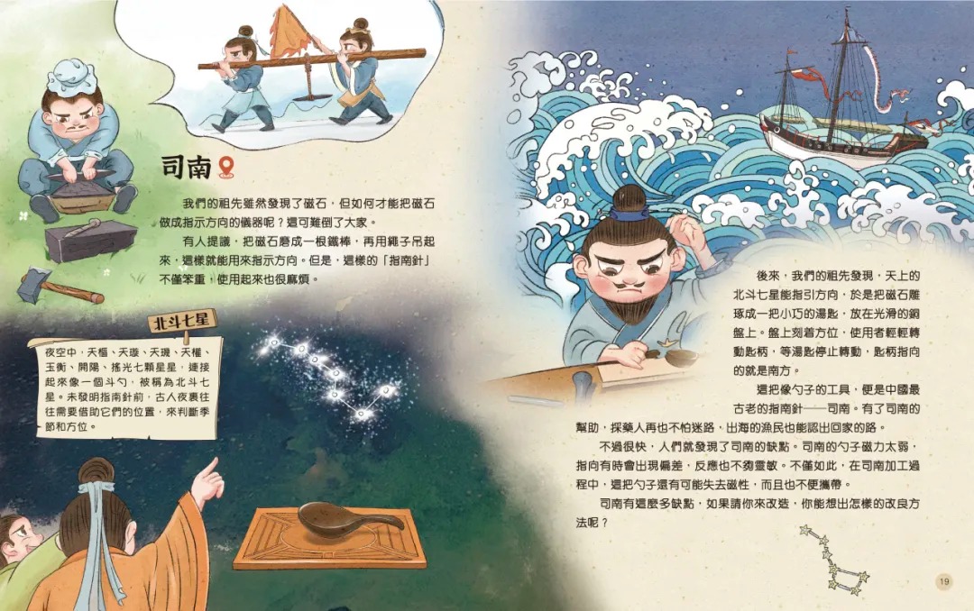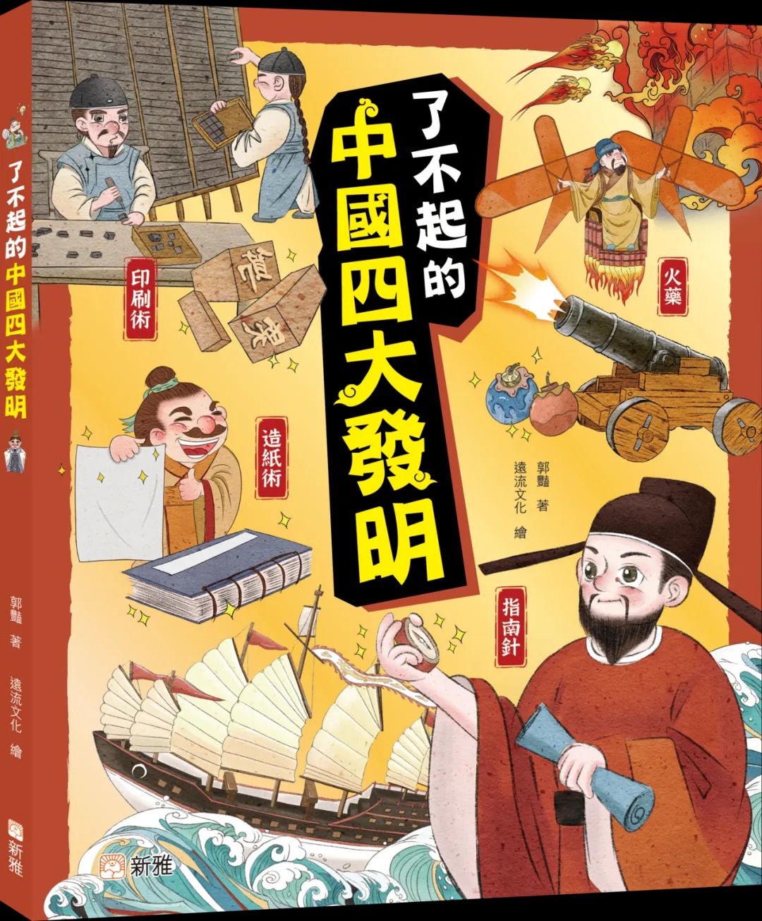 新雅文化最新出版的《了不起的中國四大發明》,會從歷史起源、演進過程、使用現況、延伸知識等角度,逐一介紹指南針、造紙術、火藥及印刷術,帶領孩子認識中國古代科技的重要成就。