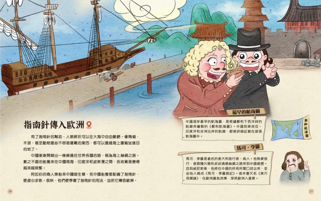 在世世代代的努力下,中國的指南針日臻完善。憑藉指南針,鄭和七次下西洋,海上絲綢之路得以開通。後來,這個發明更傳到外國,連哥倫布發現美洲新大陸,也算得上是指南針的「功勞」。指南針的發展和應用,對後世產生巨大影響,這本書將會逐一詳細講解。