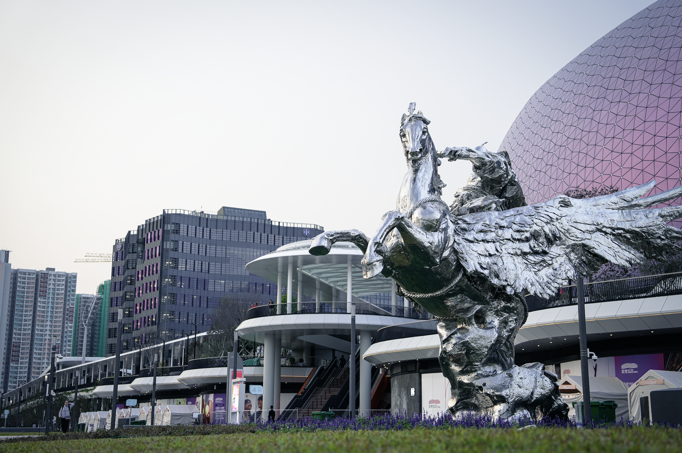由當代著名雕塑家任哲為啟德體育園創作的巨型雕塑,以香港海港為背景,策騎著飛馬的武士從啟德體育大道騰空而躍,氣勢如虹,直衝雲霄,體現香港超越向前的雄心壯志。