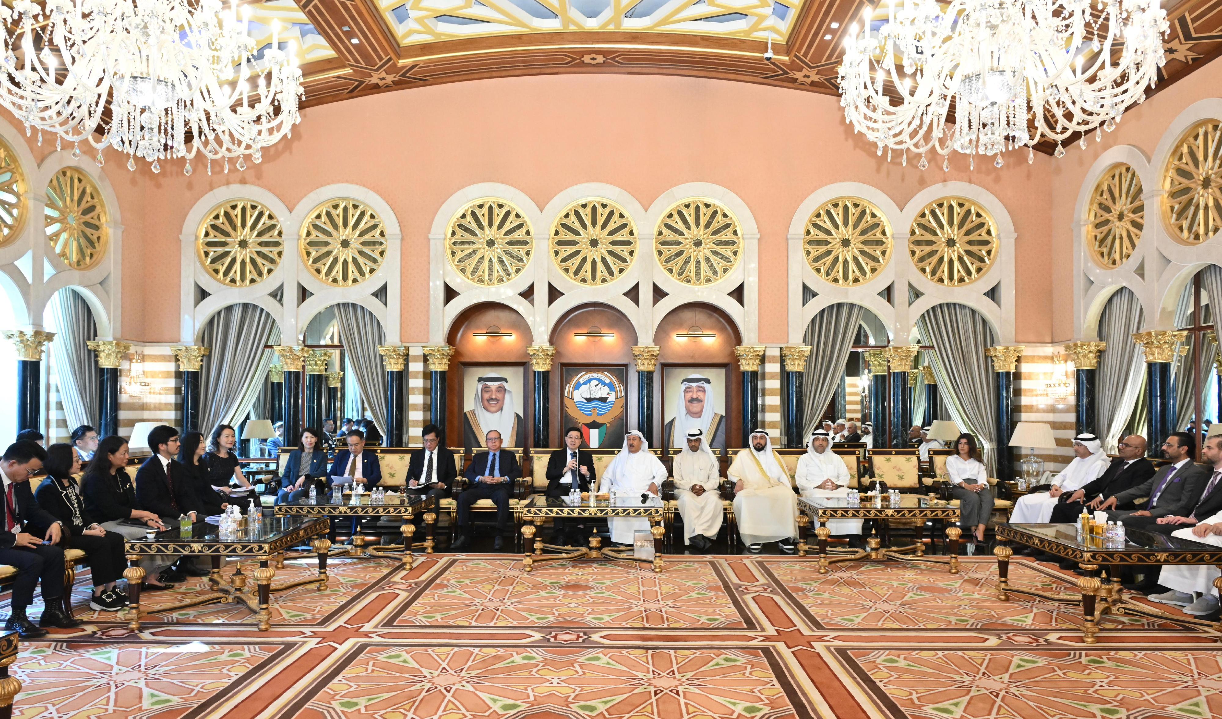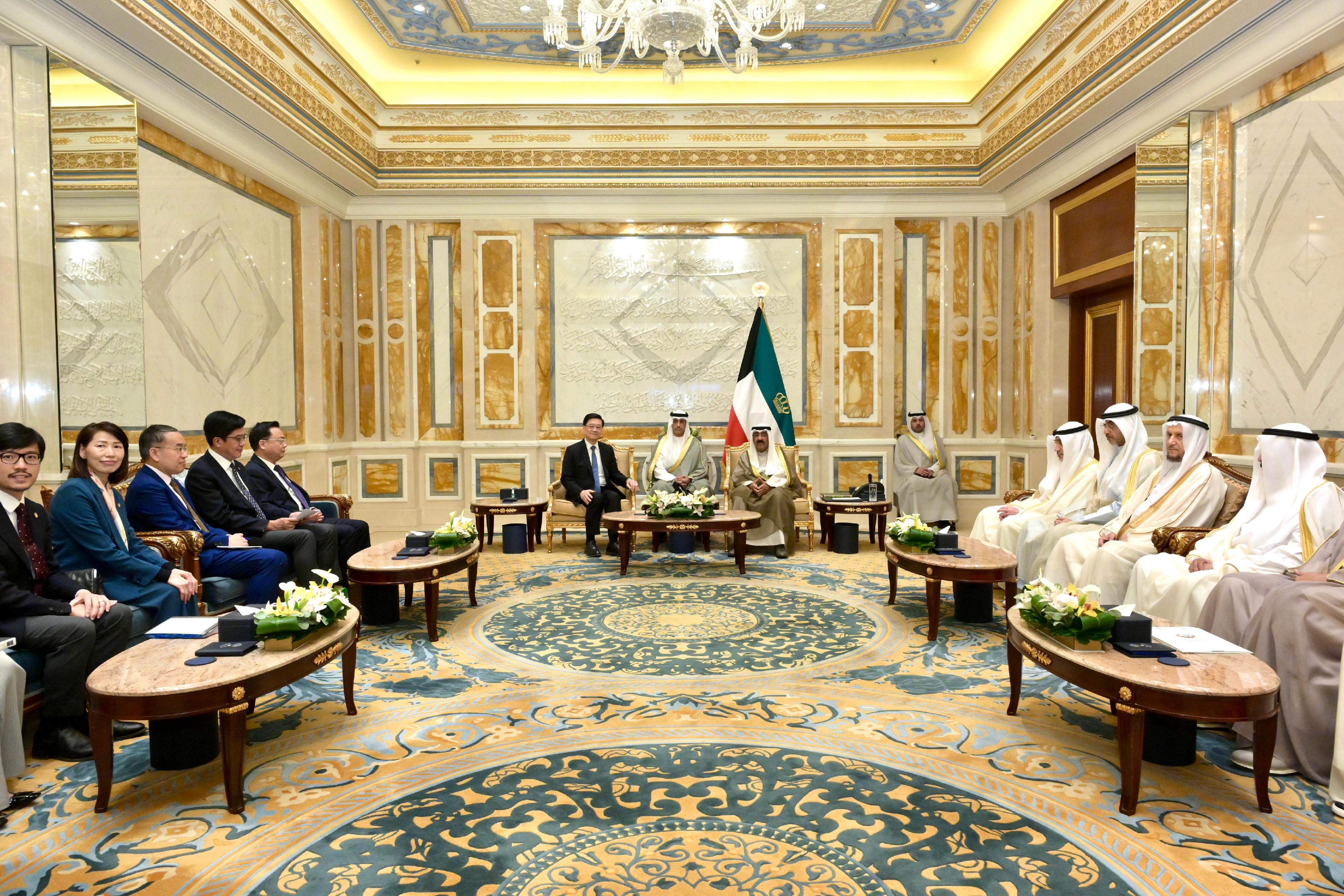行政長官李家超(左六)在科威特與科威特埃米爾(國家元首)Meshal Al-Ahmad Al-Jaber Al-Sabah(右六)會面。