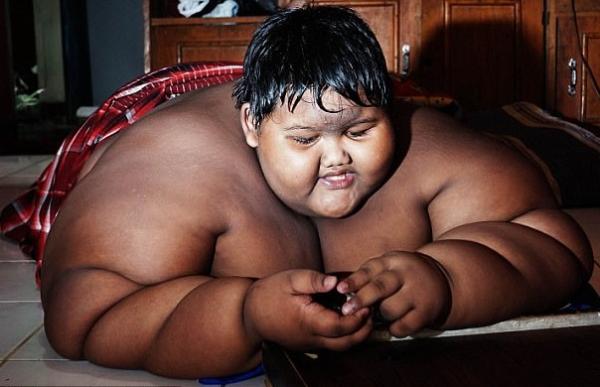 【橙訊】印尼一名男童由於父母過於溺愛,終日暴飲暴食,11歲體重已達420磅,等於5個同齡男童的體重總和,屬世界上最肥的男童。醫生之前更警告,若然他的情況沒改善,他或有生命危險。