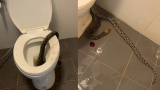 泰國男子半夜上廁所發現巨蟒躲自家座廁中。