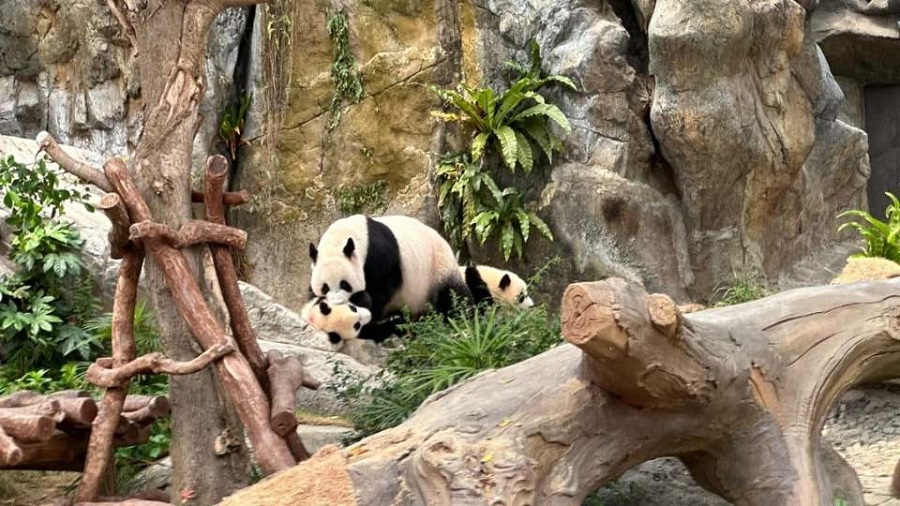 羅淑佩又說,剛命名的一對港產大熊貓龍鳳胎「加加」和「得得」,形容兩姐弟名字響亮,而海洋公園有六隻熊貓,早前來港的「安安」及「可可」生活得很開心,形容他們開始嘗試認識對方,將來亦可能會成為父母,所以海洋公園的氣氛很開心,相關產品亦很暢銷。當局亦鼓勵其他商家,包括商場以至酒店利用熊貓主題,令到大家做到「無處不熊貓」。