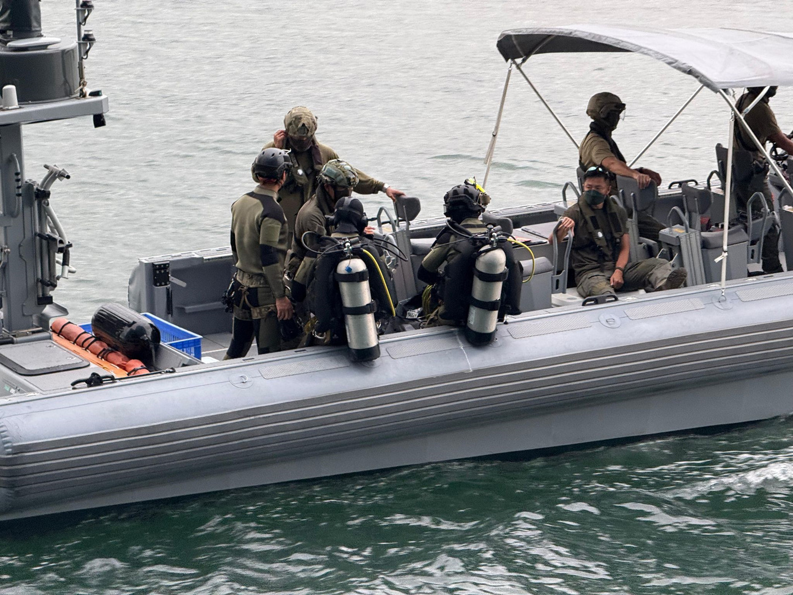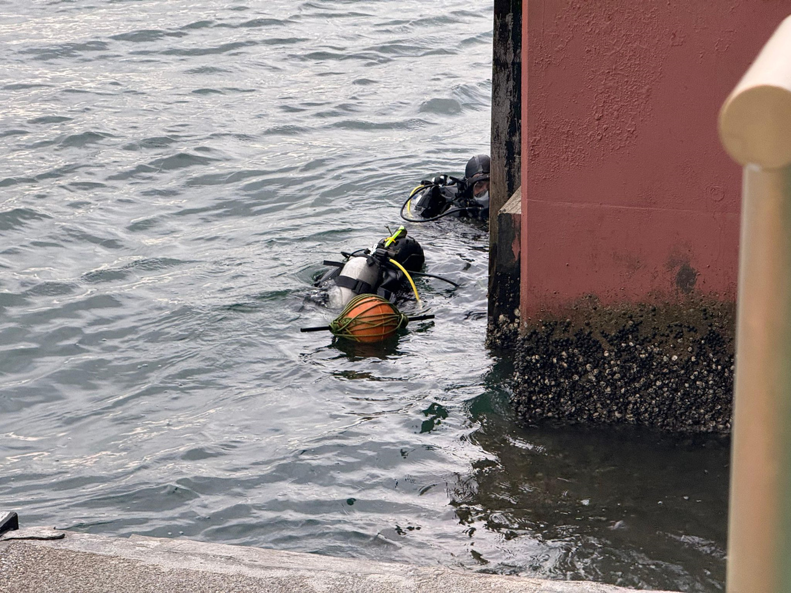 警方蛙人落海尋找涉案手機。圖:橙新聞