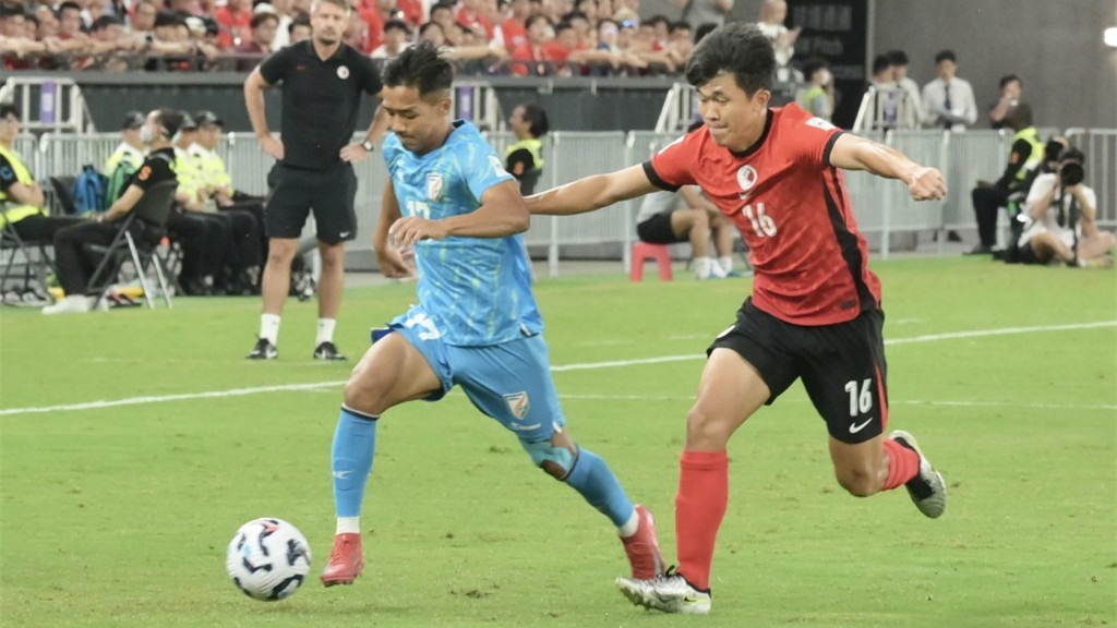 上半場,港隊的洛迪古斯及孫銘謙先後攻門,獨欠「埋門一腳」,印度亦有罰球及埋門機會,其中在34分鐘一次反擊,皮球傳到禁區,但印度球員左腳射門失機。到40分鐘,有主場球迷吶喊助威的港隊,獲得罰球機會,由祖連奴開入禁區,伏兵遠柱的周緣德在門前未能把握。