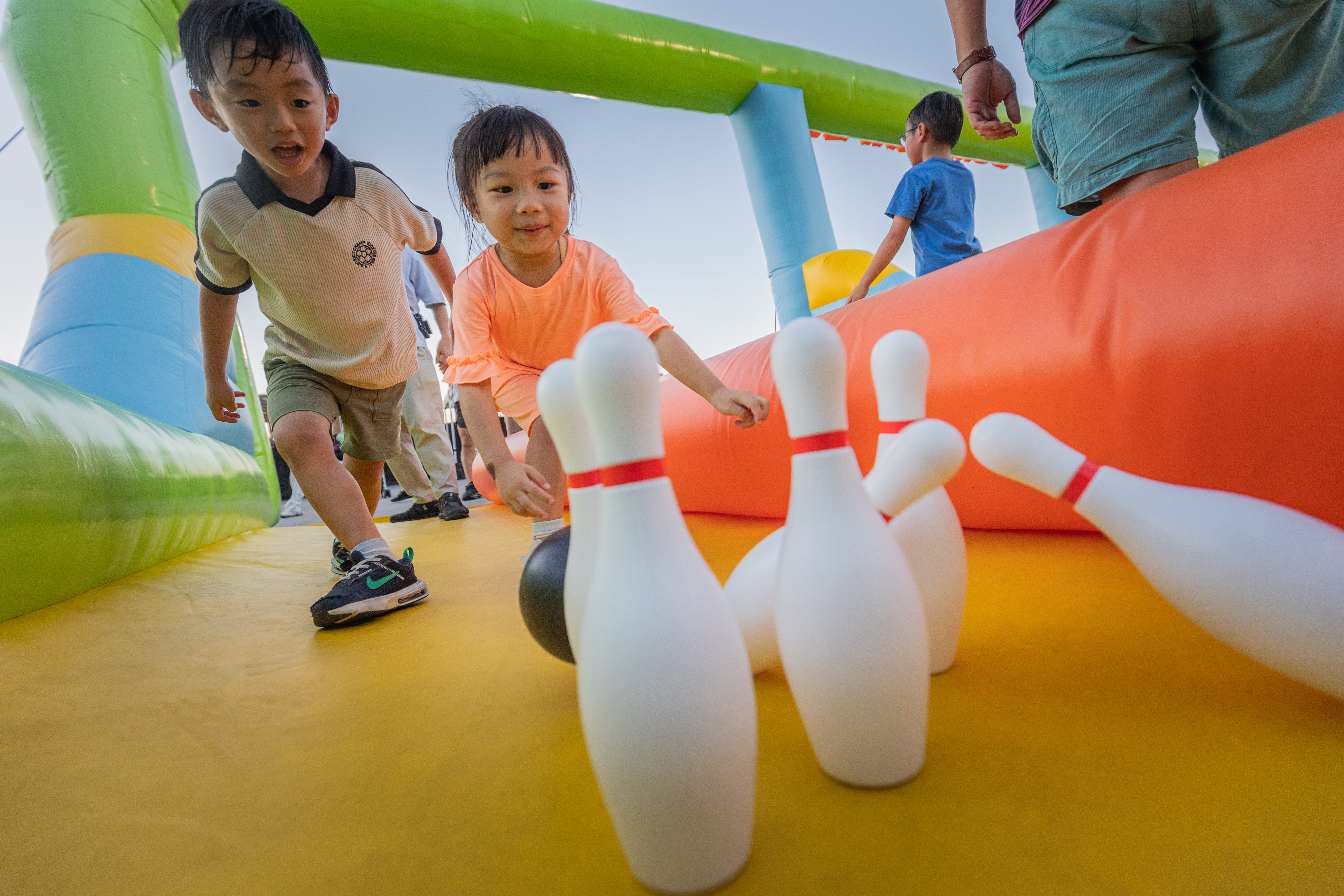 在露天環境體驗保齡球樂趣。