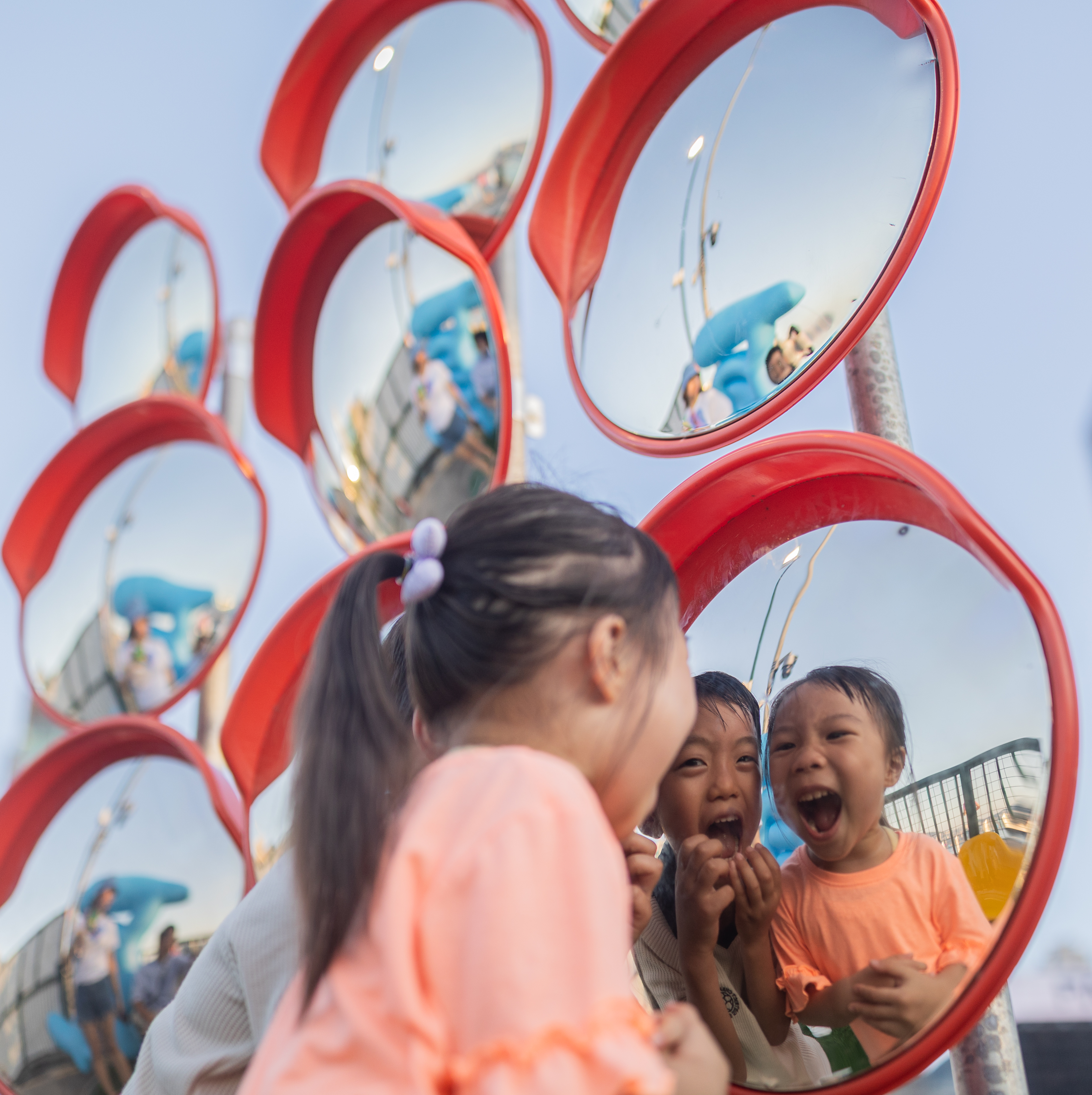 在指定區域內自由拍照,利用現場設置的廣角鏡與拍攝裝置,創作不同的視覺效果,輕鬆拍出具個人風格的照片。