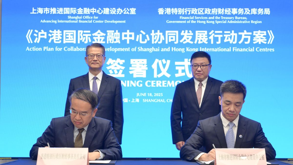 滬港簽署國際金融中心協同發展行動方案。
