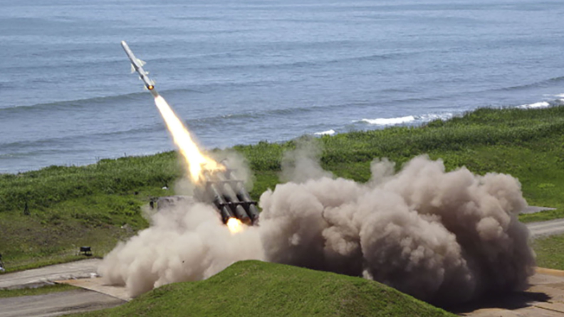 日本自衛隊發射「88式地對艦導彈」。