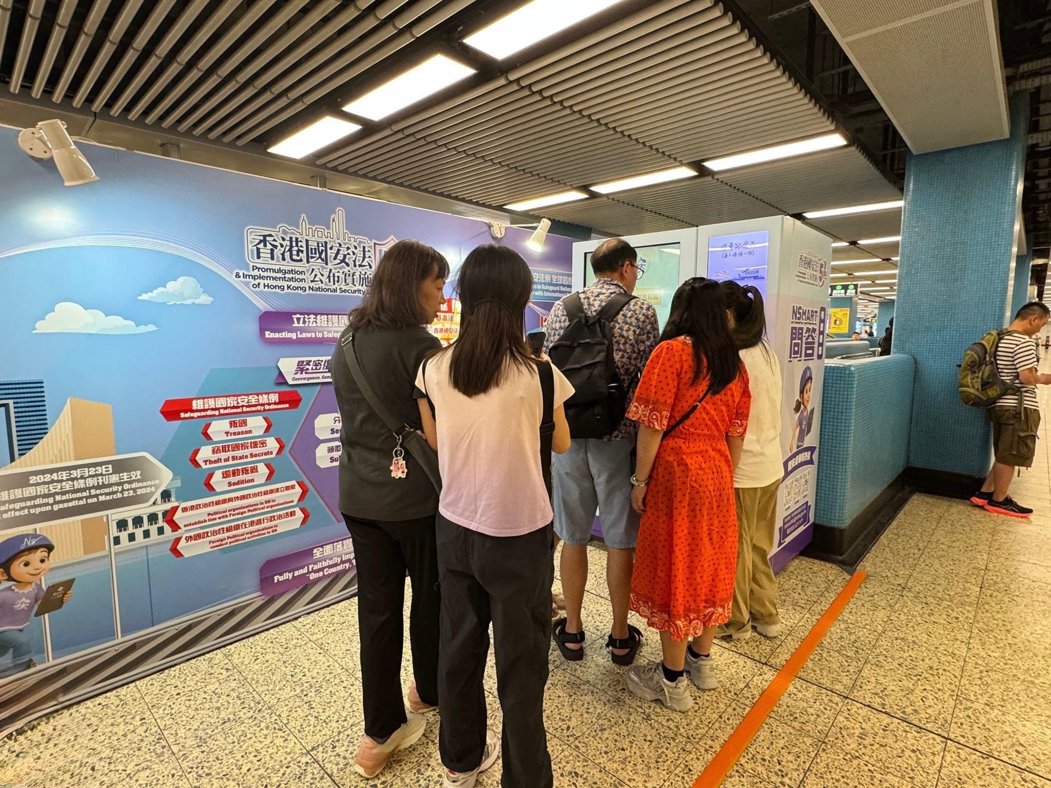 國安處分別在港鐵香港站及九龍站大堂設立「國安號」打卡點。
