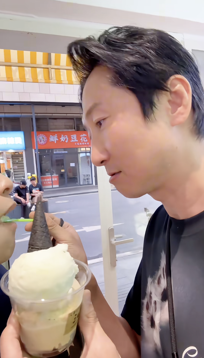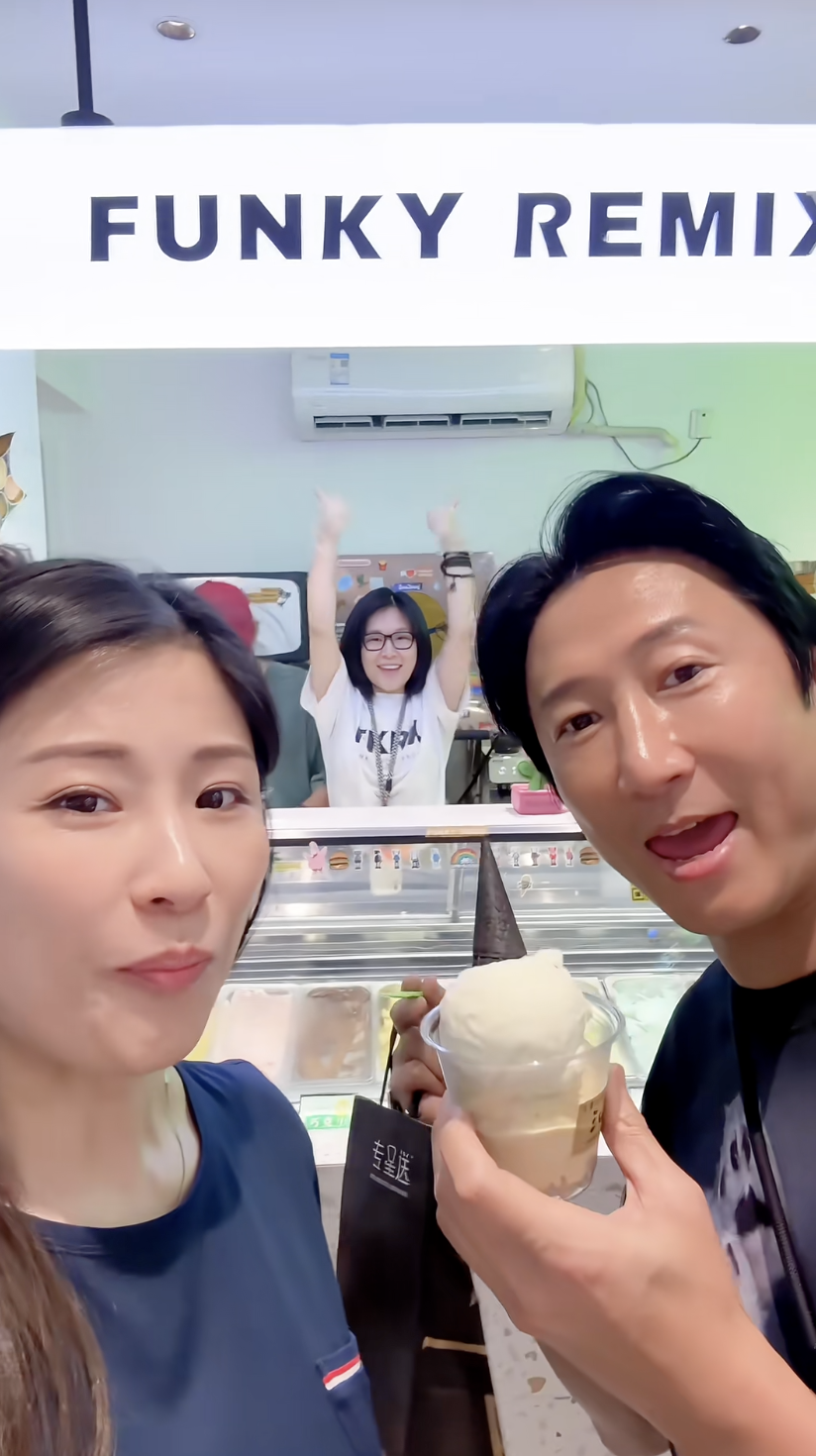洪天明親手餵老婆食雪糕。(圖:周家蔚@小紅書)