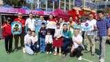 是次大嶼山東涌灣大型清潔活動的參加者興奮地展示活動「成果」。