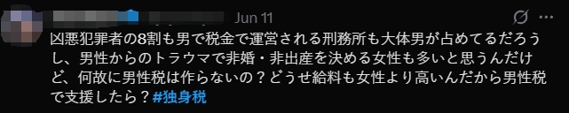 日本網友詢問:80%的暴力罪犯是男性,很多女性因受到男性傷害而決定不結婚生子,為什麼不徵收男性稅呢?