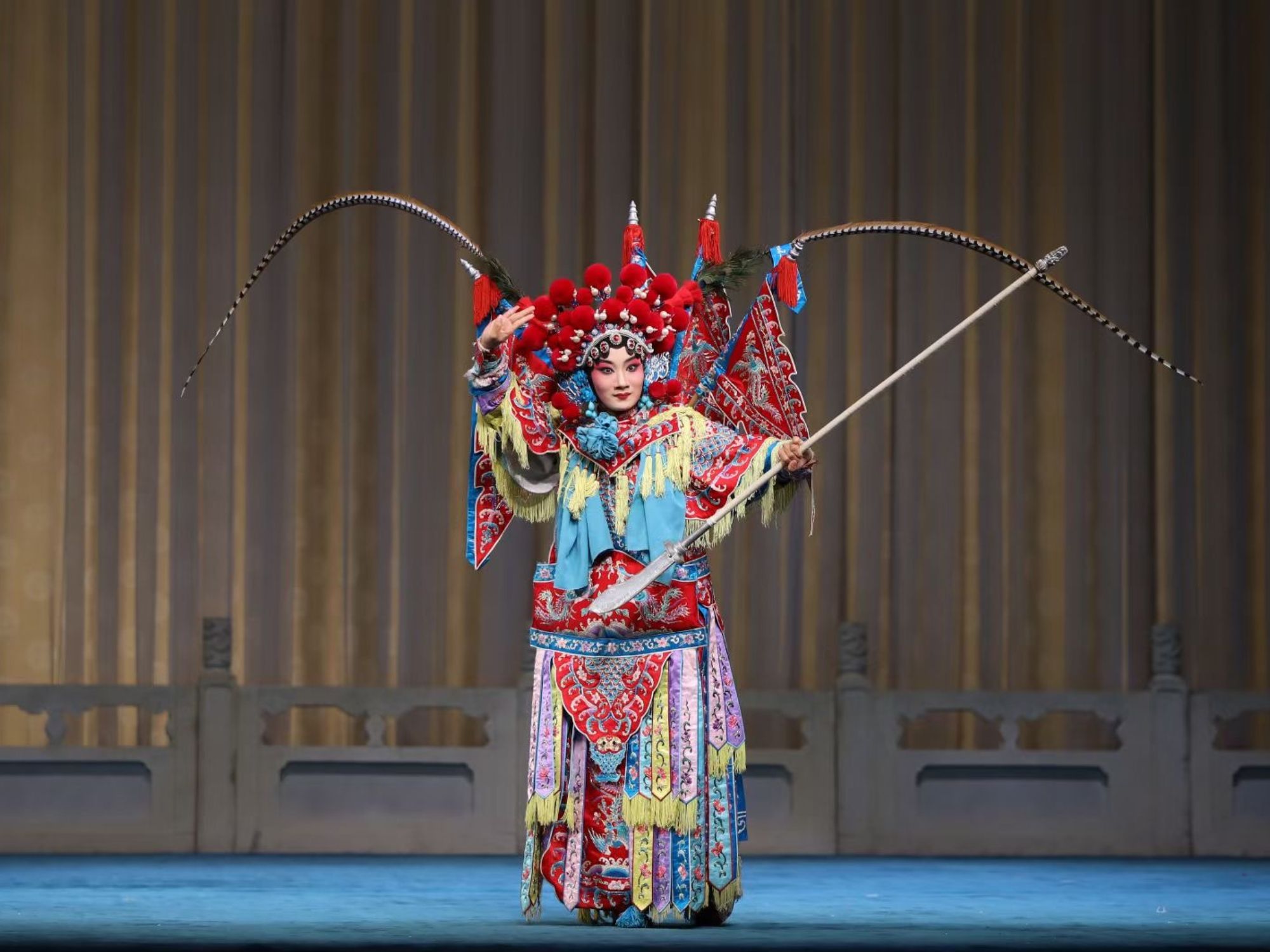 京劇《女殺四門》由李春雨(飾劉金定)主演。《女殺四門》又名《壽州救駕》。宋朝時,趙匡胤與南唐作戰,為李惠王所誘,被困壽州。趙匡胤命韓岐回朝搬其外甥高俊保前來求助。高家父子前往救援也被困。高俊保之妻劉金定思念丈夫久去不歸,恐有不測,遂告別母親親自掛帥前往營救,力殺四門大敗南唐軍,解趙匡胤壽州之困。