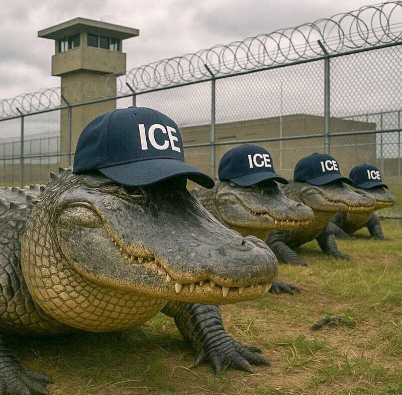 特朗普在啟用儀式前對記者說,非法移民若企圖逃離「鱷魚惡魔島」並遇到鱷魚,避免直線奔跑可能略微提升他們1%的生存機率。據報道,這座新落成的移民拘留設施位於美國佛羅里達州邁阿密以西約80公里處,設有5000個床位。該地被鱷魚環繞,白宮稱之為「鱷魚惡魔島」。